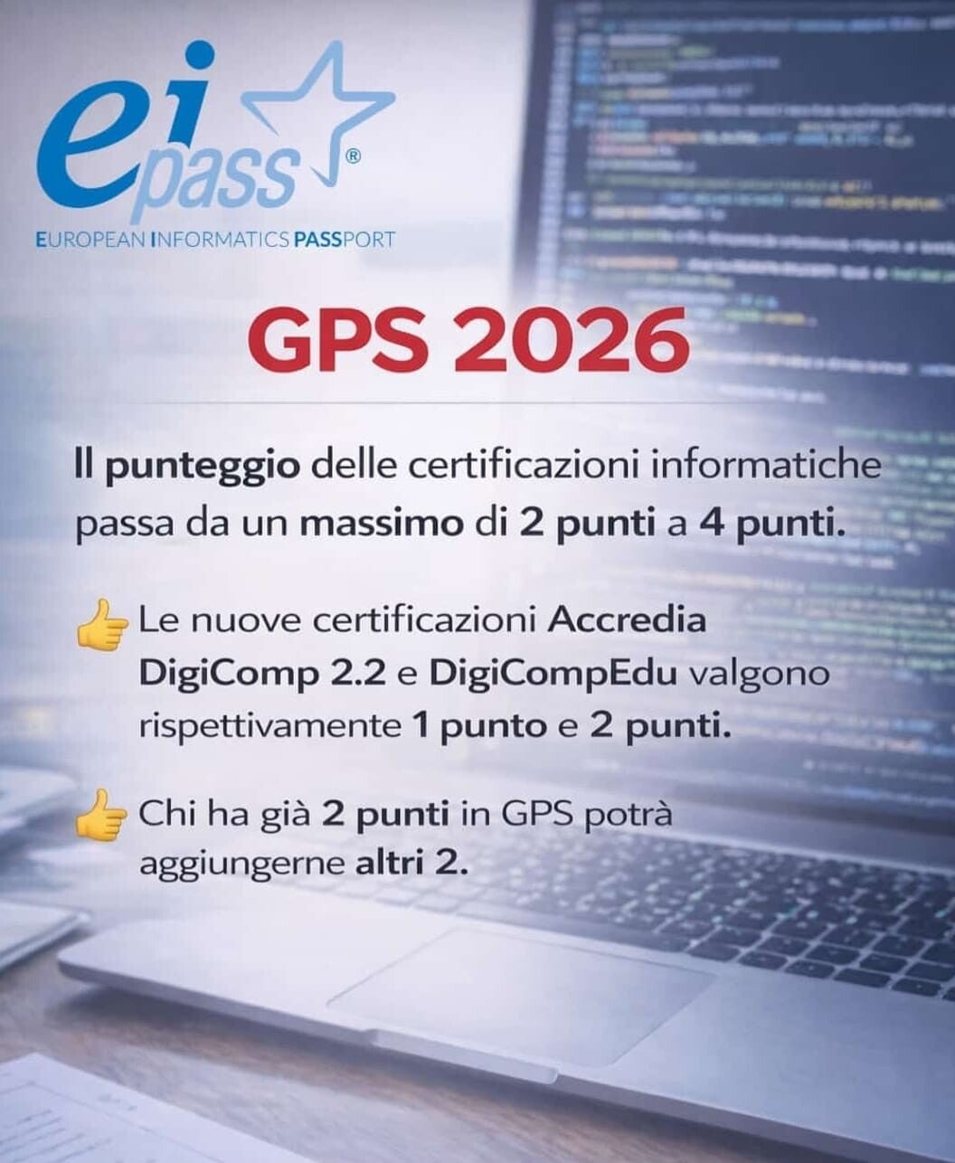 Carpediem, in qualità di partner EIPASS, informa che sono ora disponibili le certificazioni Accredia DigiComp 2.2 e DigiCompEdu.